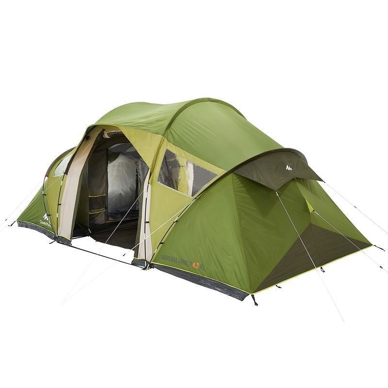 2 bedroom dome tents: 1 camper in each room, and a central storage space for suitcases and backpacks.