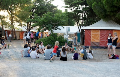 Accommodation type: Trigano Esterel type tents offering 8 beds per tent, separated in 2 separate quarters, with partition walls, groundsheet, solar lighting and extra open activity tent of 60 sq. meters. Bedding, mattresses, sheets and comforters are provided. Toilets (washbasins, showers and toilets) are available in the center’s main building.