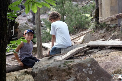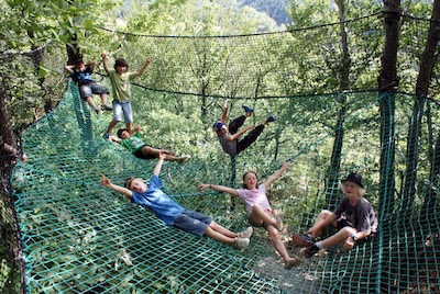 In the forest surrounding our village stands a magical place: » LA CITE DES CABANES » (VSF Camp 7): one big « Cabane-torchis” (cob), another one in straw, 2 rope bridges and a 40 sq. meter hammock.