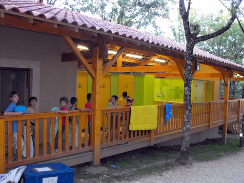 This future city already has a windmill, a rain water recovery system and solar panels, everything necessary to furnish energy ! There, children and Counselors sleep in bungalow tents (5 to 6 beds). The tents and the shower facilities are located in the woods at the border of the village, in the shade!
