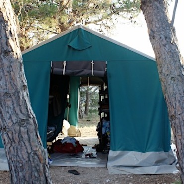 The Tents: Trigano Esterel type tents offering 8 beds per tent, on cement floors, with lights, and closets, rooms in the tents are separated in 2 separate quarters, with partition walls, groundsheet, solar lighting. Bedding, mattresses, sheets and comforters are provided.