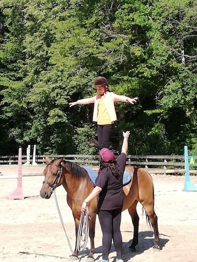 Each lesson focuses on safety and having fun. No previous riding experience is necessary. In fact, vaulting will help them learn to ride or become a better rider!