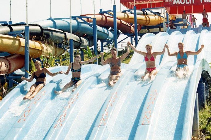 With its 7 inflatable tube slides, 2 trapdoors, a 300-meter lazy river, a Water Jump zone, inflatable obstacle courses, and a dedicated Bodyboard/Surf track, this park offers a complete aquatic adventure combining adrenaline, laughter, and unforgettable moments under the sun!